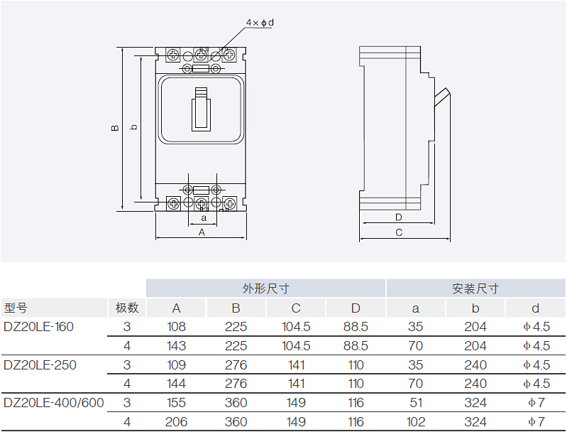 DZ20LE系列漏电断路器适用于交流380V,频率50Hz,额定电流600A及以下的电路中,作为人身间接触电保护之用,也可用来防止设备绝缘损坏,产生接地故障电流而引起的火灾危险。并
