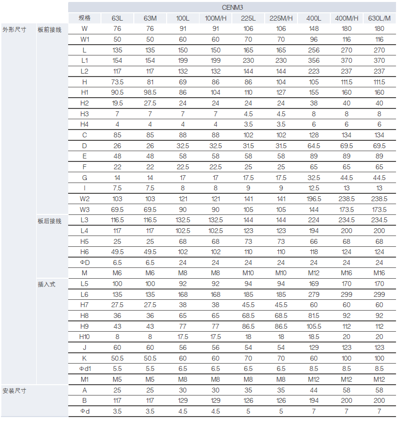 CENM3-630为400、500、630A三级